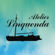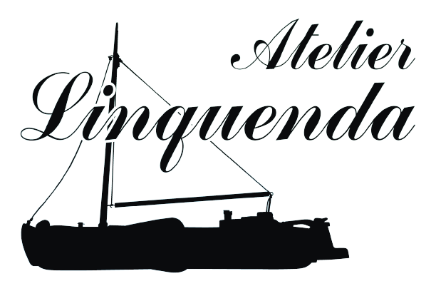 Atelier Linquenda is vernoemd naar het schip van mijn vader, waar hij als kind is opgegroeid, de Linquenda. De sierlijke letters zijn verwezen naar het handschrift van mijn moeder. Het blauw en het groen is het water, de lucht en de natuur als een aquarel op de achtergrond.